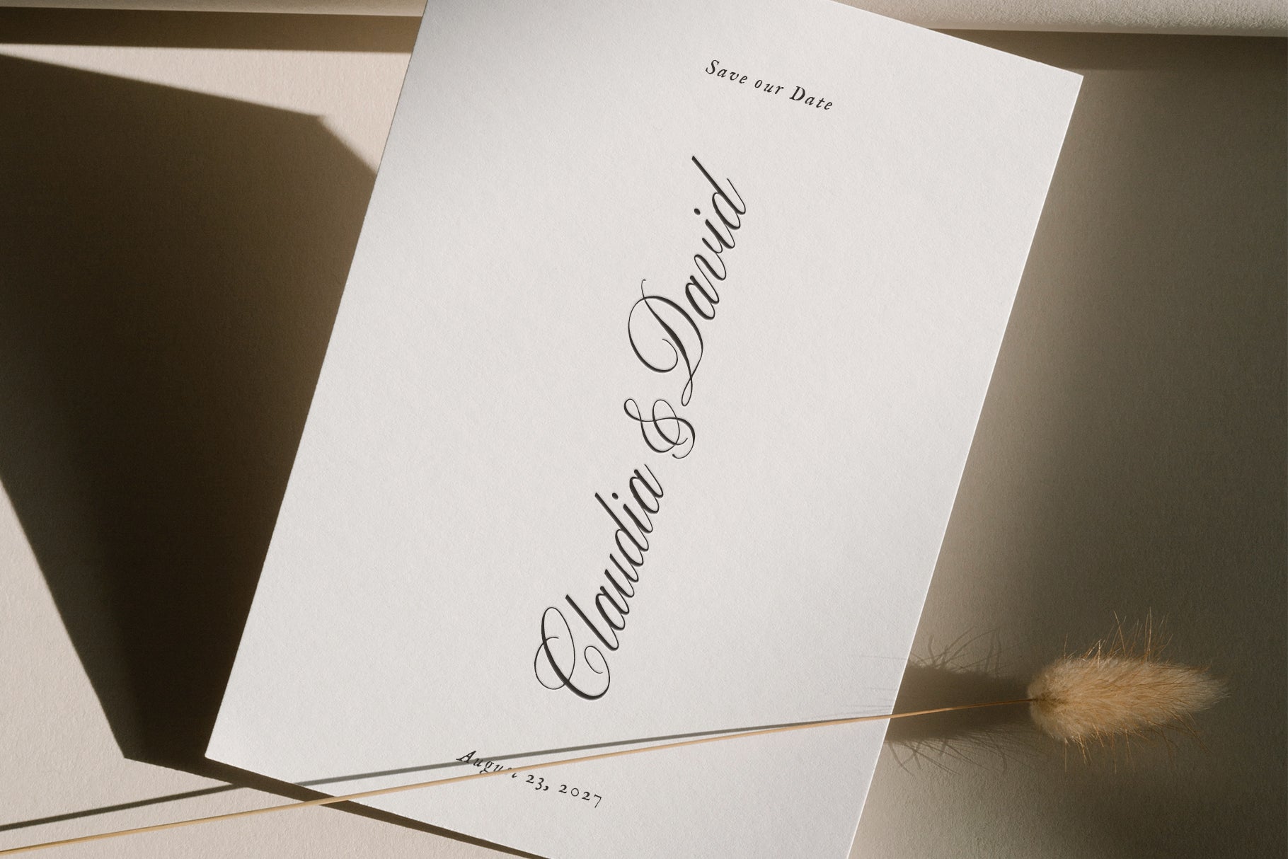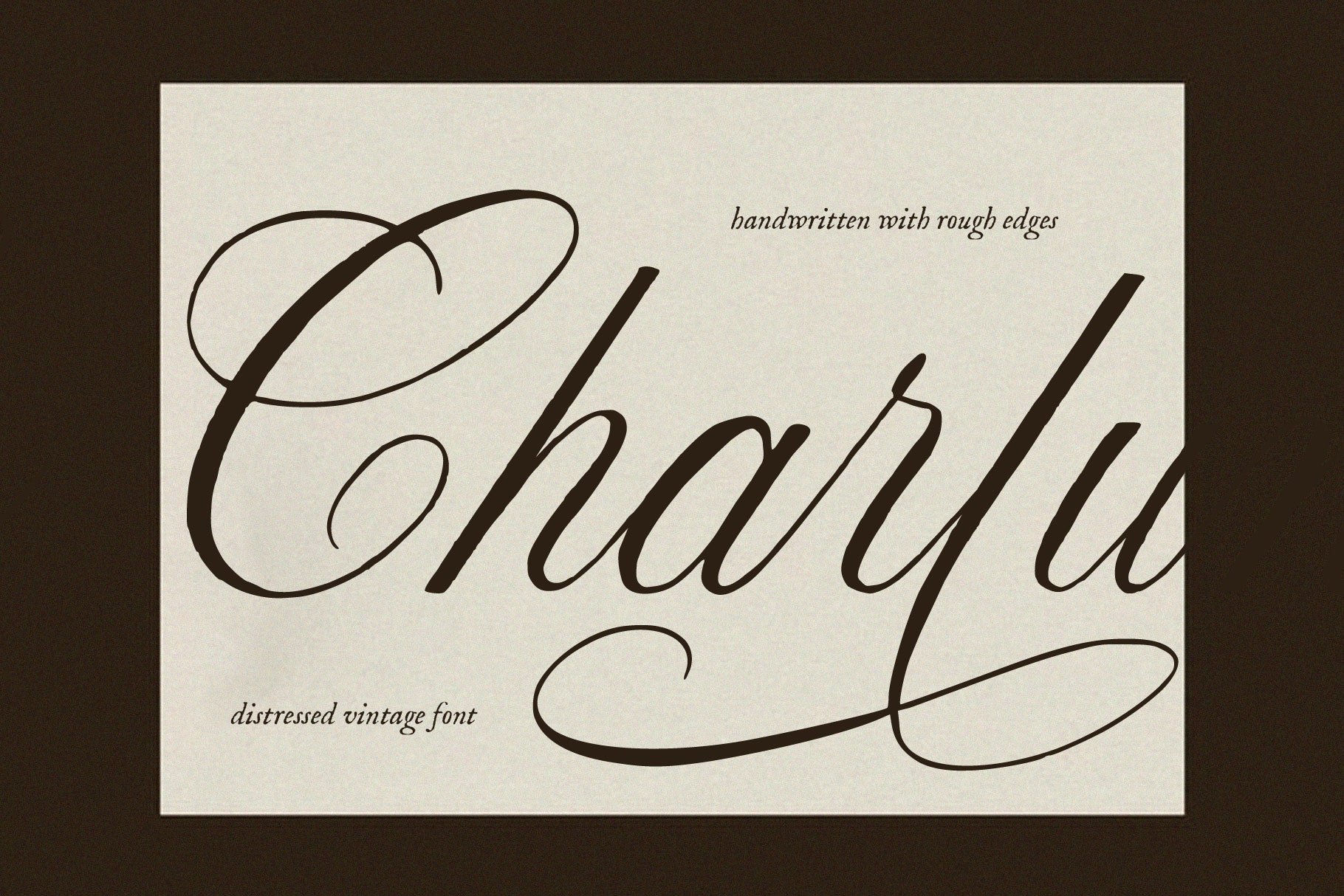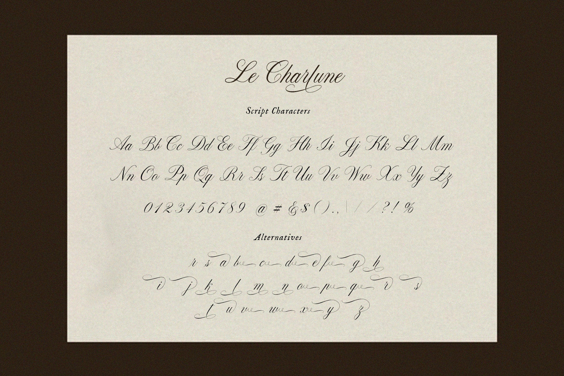 Meet the new font - La Charlune. This font blends the timeless elegance of classic copperplate script with the warmth of hand-drawn texture. Graceful letterforms preserve the refined beauty of traditional calligraphy, while subtle irregular details reveal the charm of ink on paper. Perfect for wedding stationery, luxury branding, and any project that calls for sophistication with a human touch.